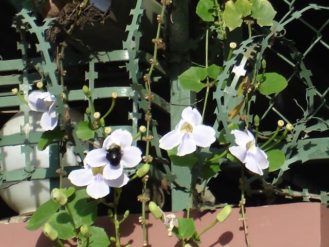 Hoa leo hàng rào với chú "phi cơ" đang hút mật