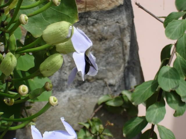 Trong hoa cát đằng đang có một anh vò vẽ chui tận vào giữa nhụy hút mật