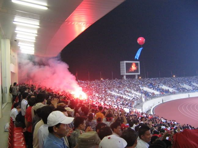 Lửa đã chaý trên các khán đài, nhưng đây là lửa giống như ở Giải Sê ri A, khác xa ngọn lửa vẫn thường thấy trên sân Chi lăng- Đà nẵng: